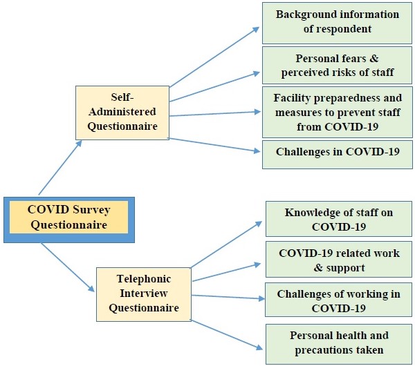 Method: The survey was conducted with all 280 medical and paramedical staff in 24 primary healthcare centers of government to understand the preparedness of primary health care facilities in terms of providing a safe working environment to healthcare providers and to prevent the spread of infection while discharging duties during COVID-19. The study used mix mode of data collection by administering telephonic and self-administered questionnaire. It is a descriptive study based on review of secondary literature and the different measures adopted in the survey to ensure data quality.